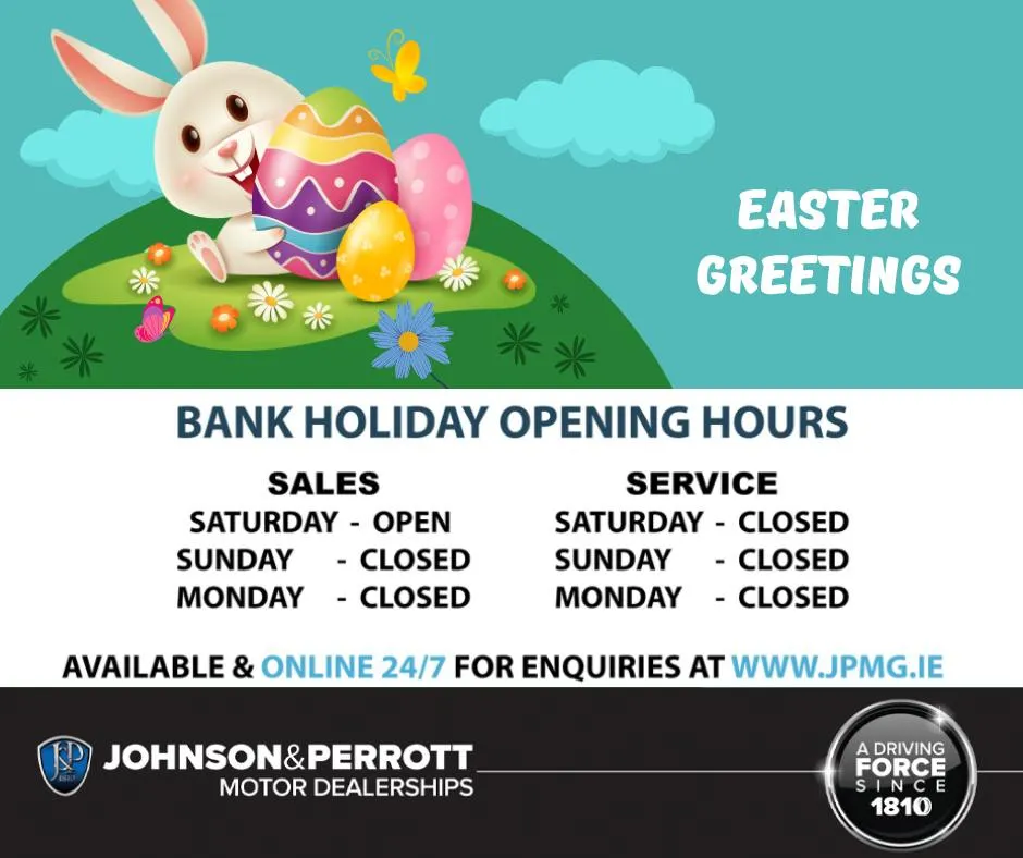 Wishing you a very happy Easter Bank Holiday Weekend. Please note that our showrooms are open as usual tomorrow Saturday, but closed on Easter Monday. As always, we are available online 24/7 at www.jpmg.ie